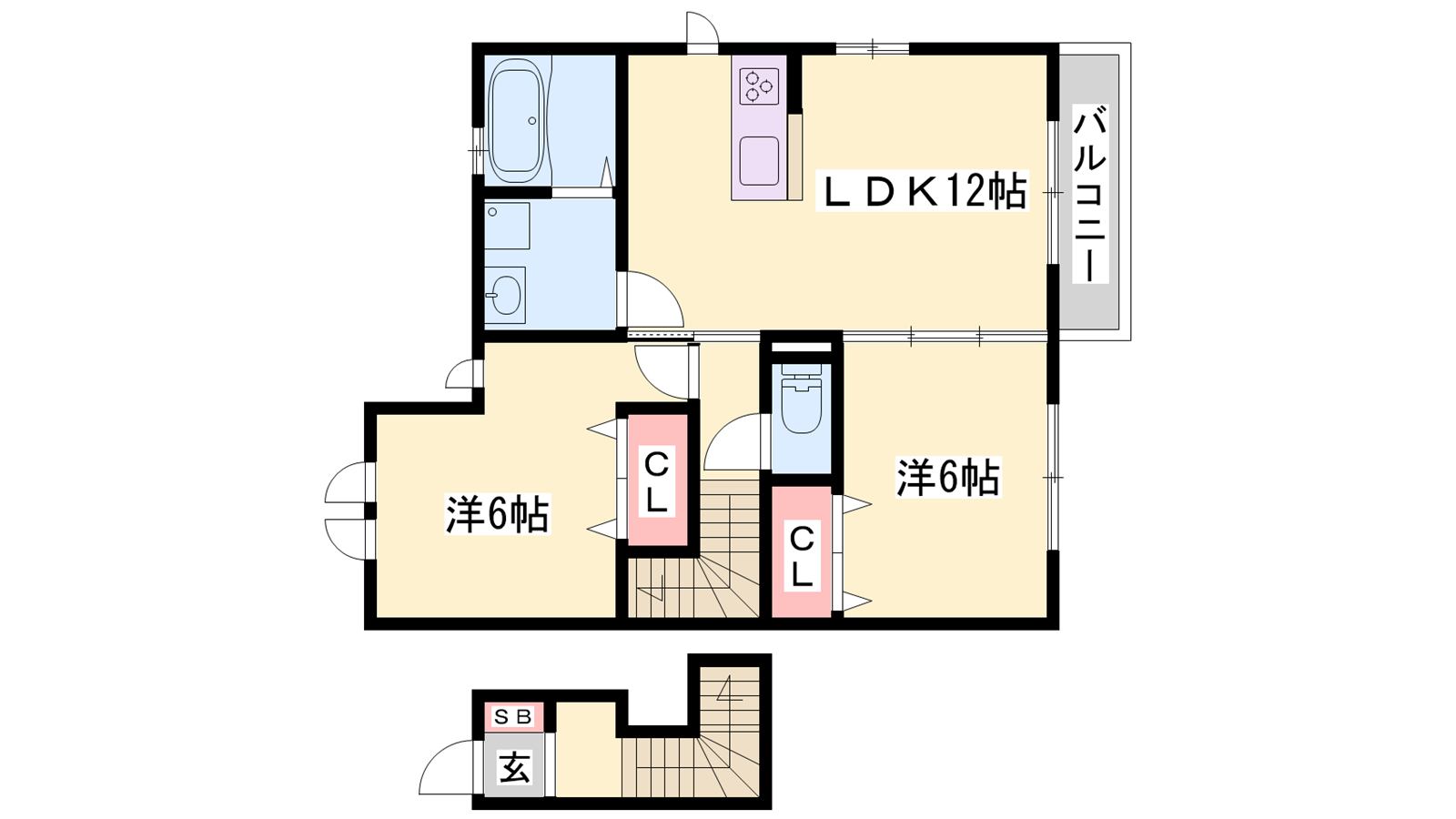 - LDK12帖、洋室6帖、洋室6帖