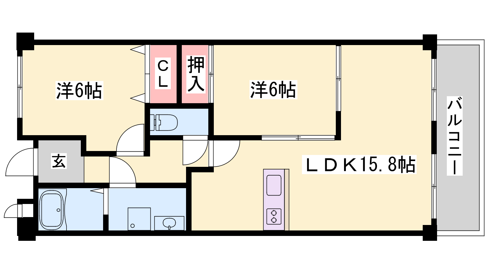 - LDK15.8帖、洋室6帖、和室6帖