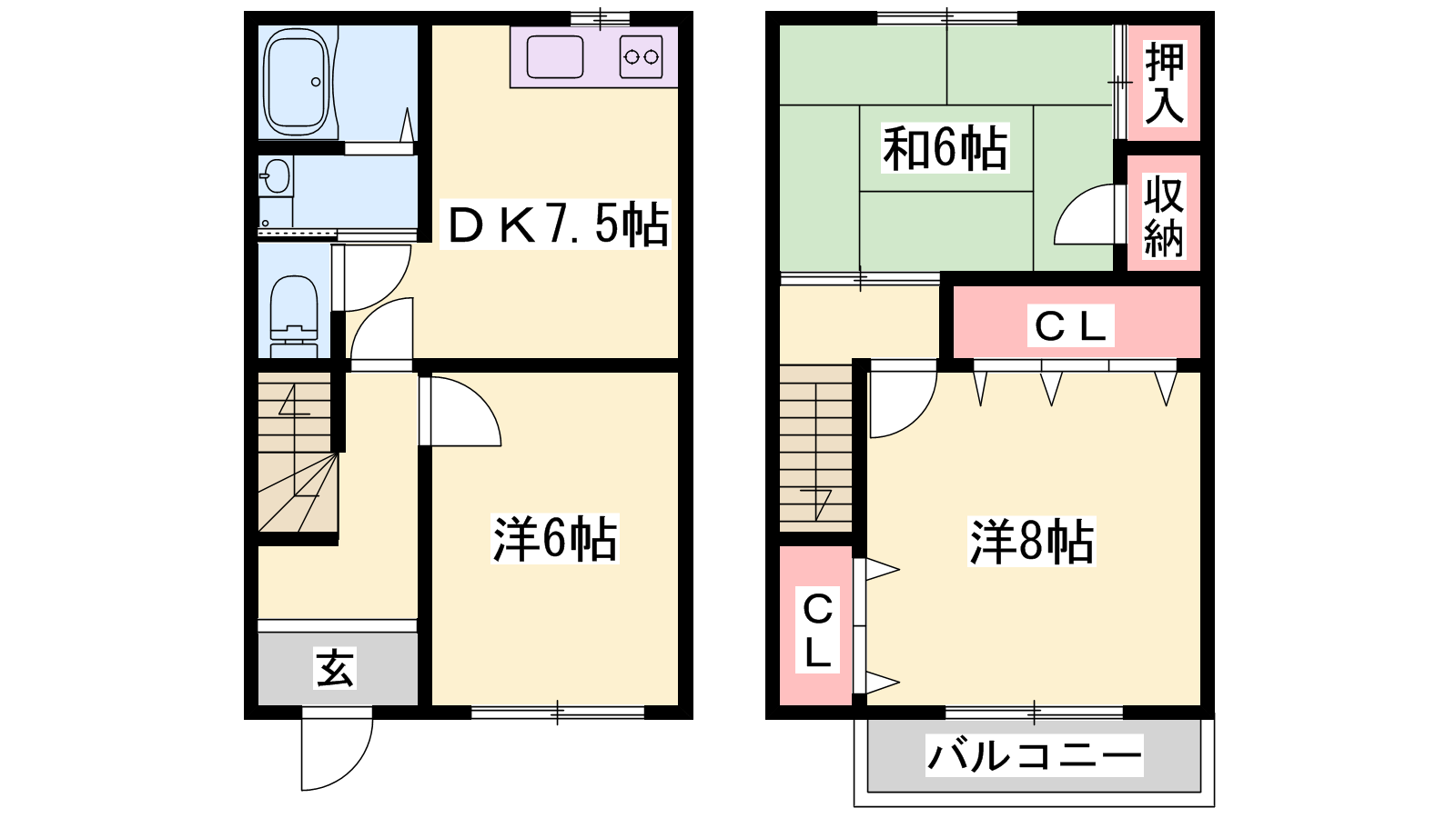 - DK7.5帖、洋室8帖、洋室6帖、和室6帖