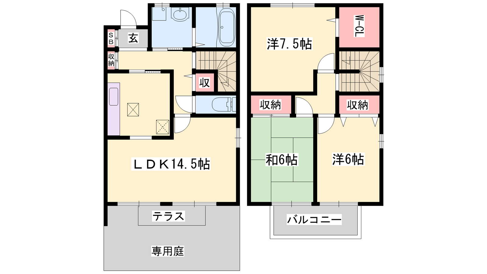 - LDK14.5帖、洋室6帖、和室6帖、洋室7.5帖