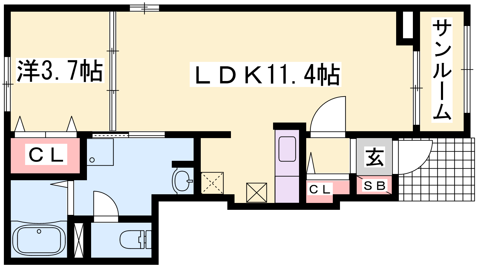 - LDK11.4帖、洋室3.7帖