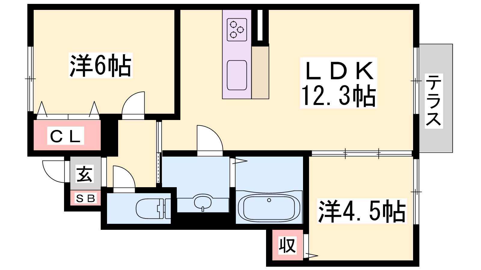 - LDK12.3帖、洋室6帖、洋室4.5帖