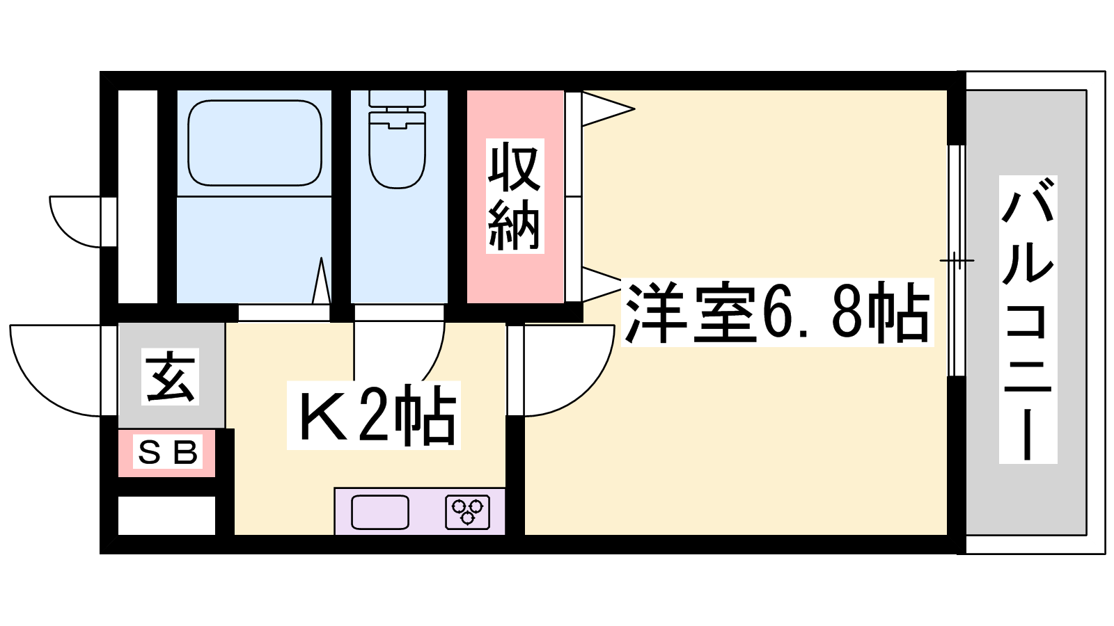- K2帖、洋室6.8帖