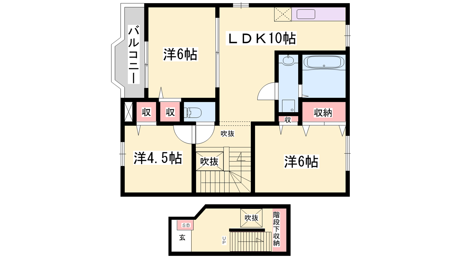 - LDK10帖、洋室6帖、洋室4.5帖、洋室6帖