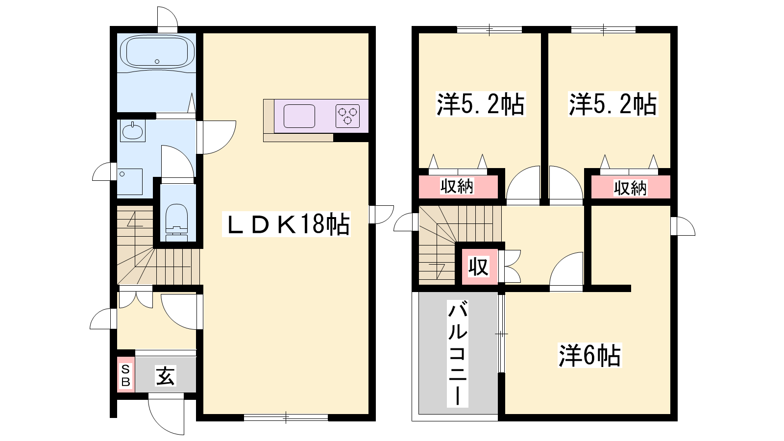 - LDK18帖、洋室6帖、洋室5.2帖、洋室5.2帖