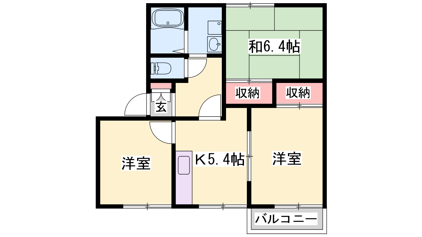 - K5.4帖、洋室4.6帖、和室6.4帖、和室5.9帖