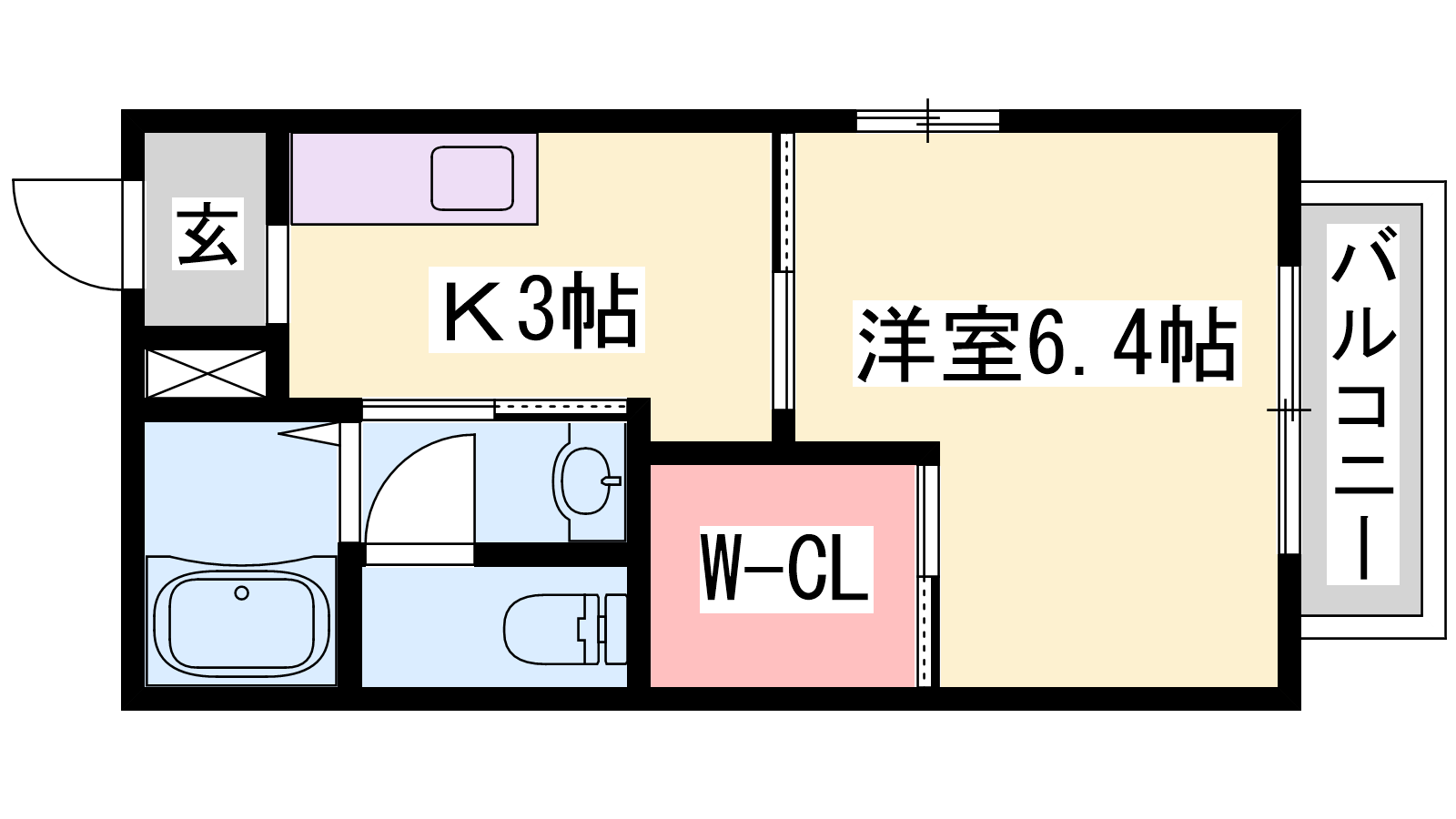 - K3帖、洋室6.4帖