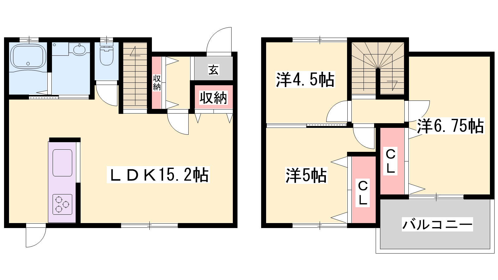 - LDK15.2帖、洋室6.75帖、洋室5帖、洋室4.5帖