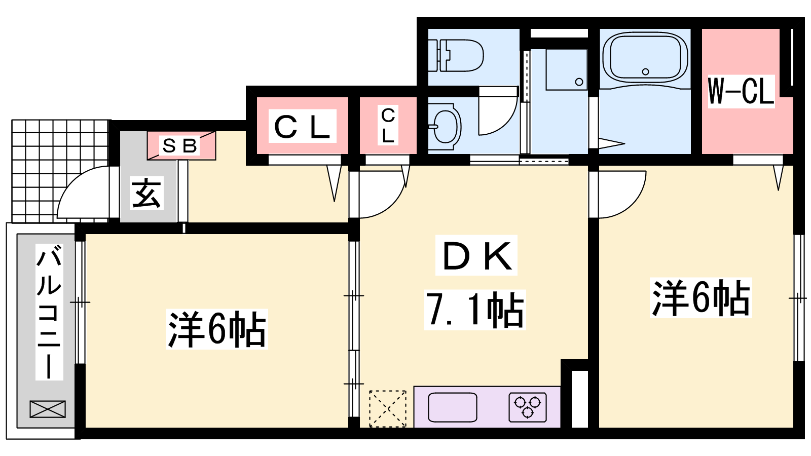 - DK7.1帖、洋室6帖、洋室6帖