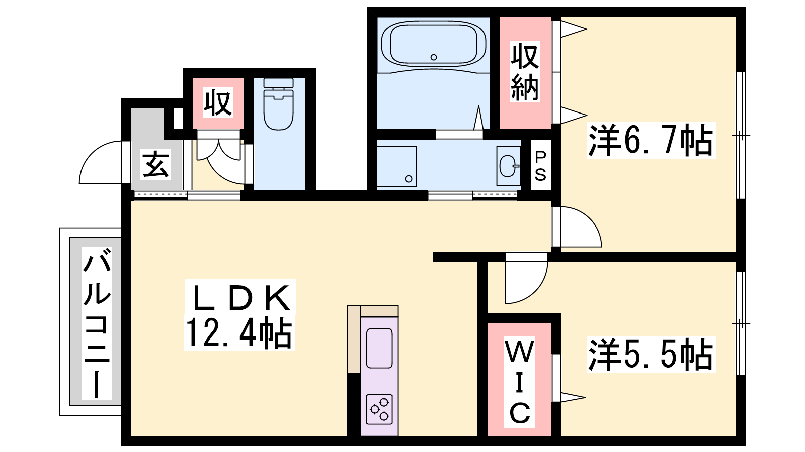 - LDK12.4帖、洋室6.7帖、洋室5.5帖