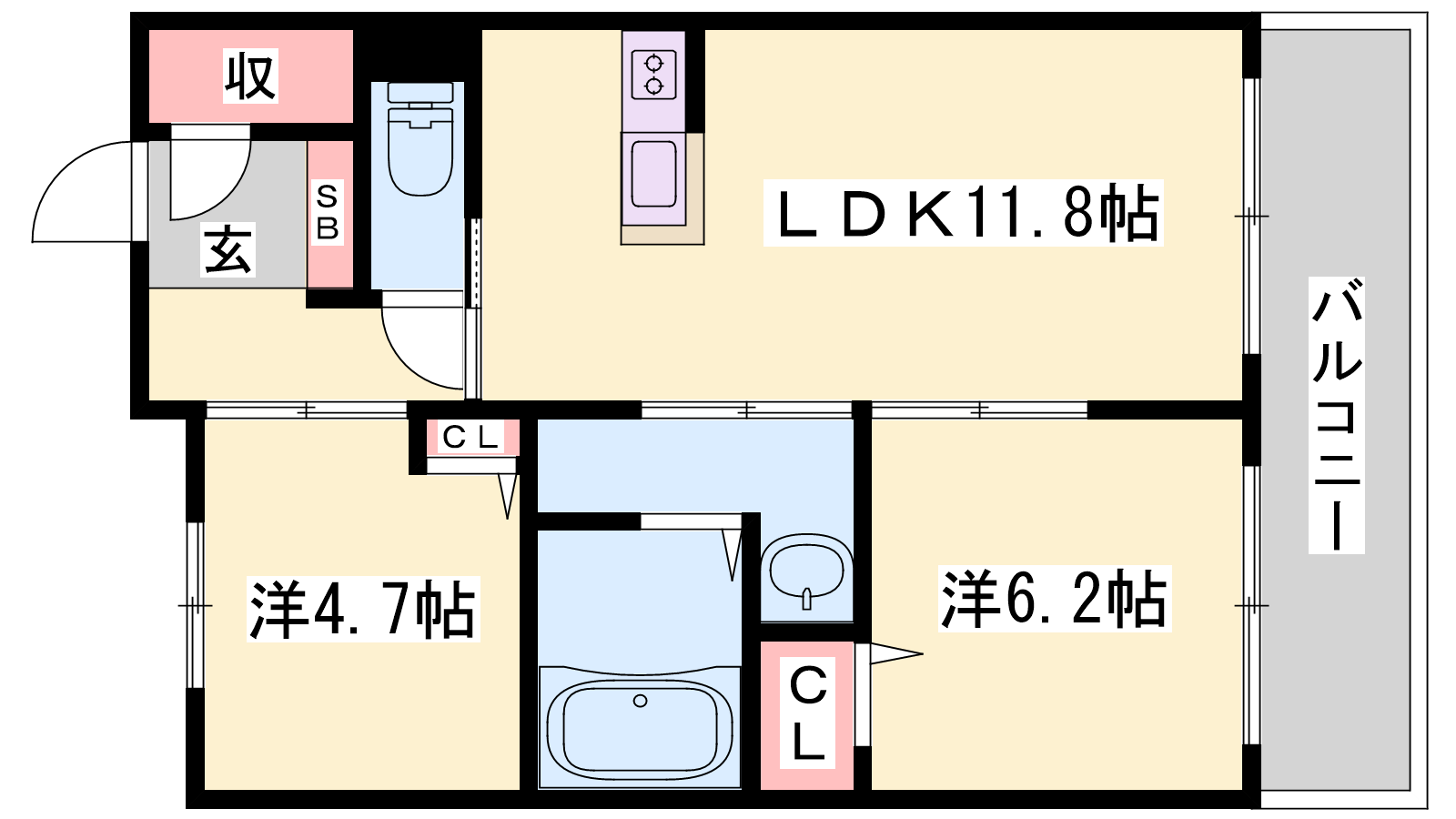 - LDK11.8帖、洋室6.2帖、洋室4.7帖