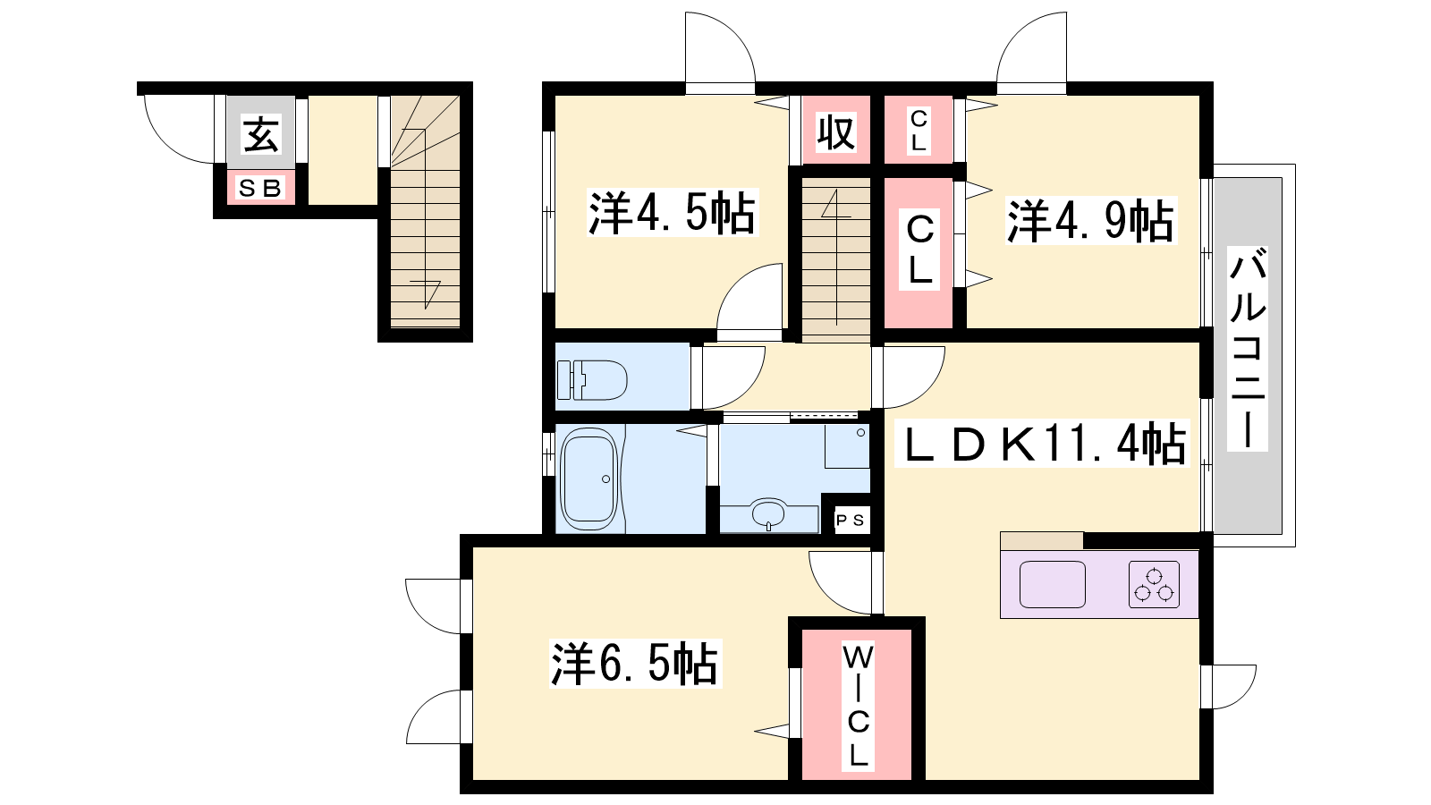 - LDK11.4帖、洋室6.5帖、洋室4.9帖、洋室4.5帖