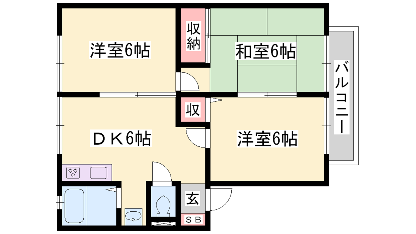 - DK6帖、洋室6帖、洋室6帖、和室6帖