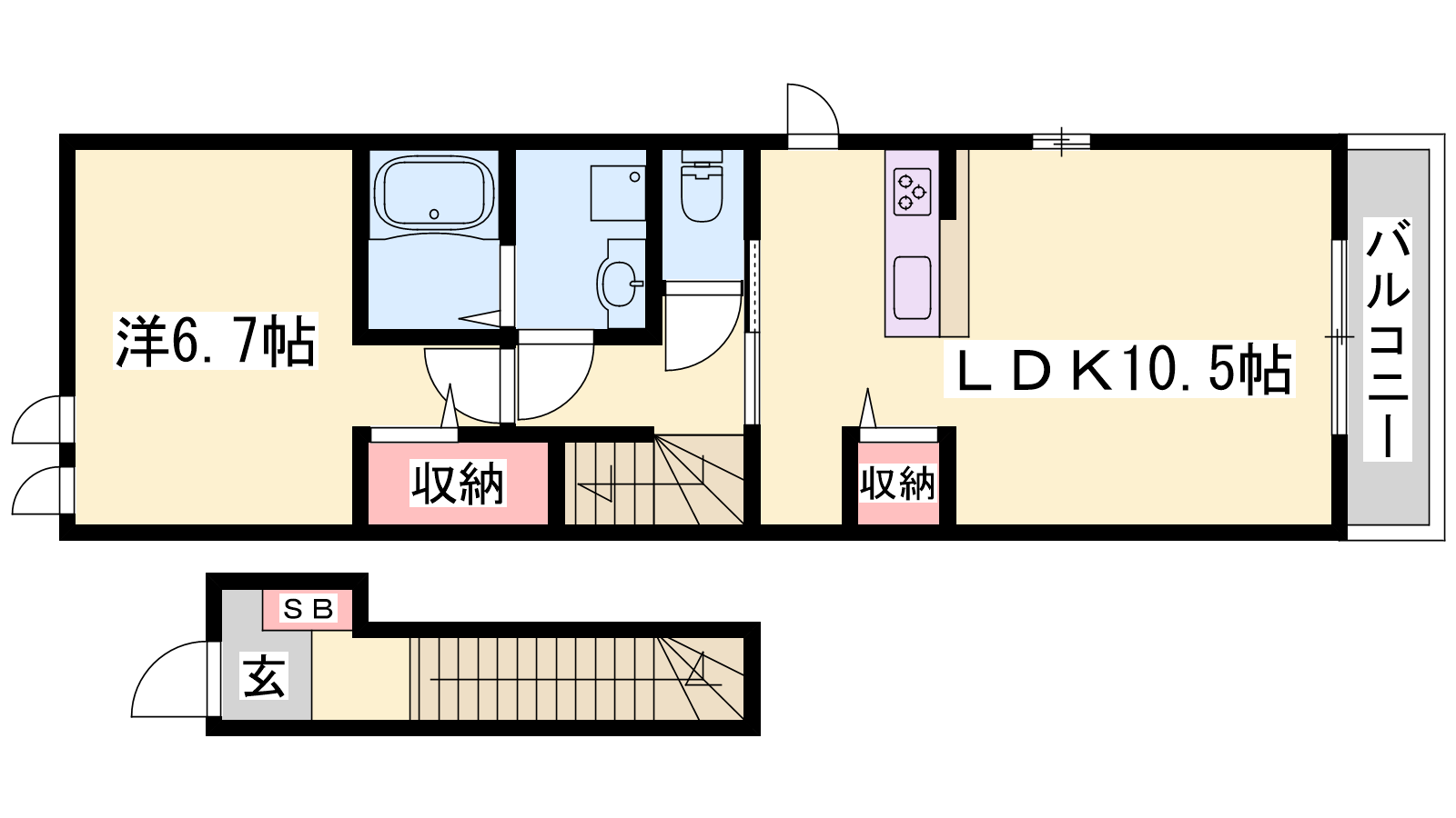 - LDK10.5帖、洋室6.7帖