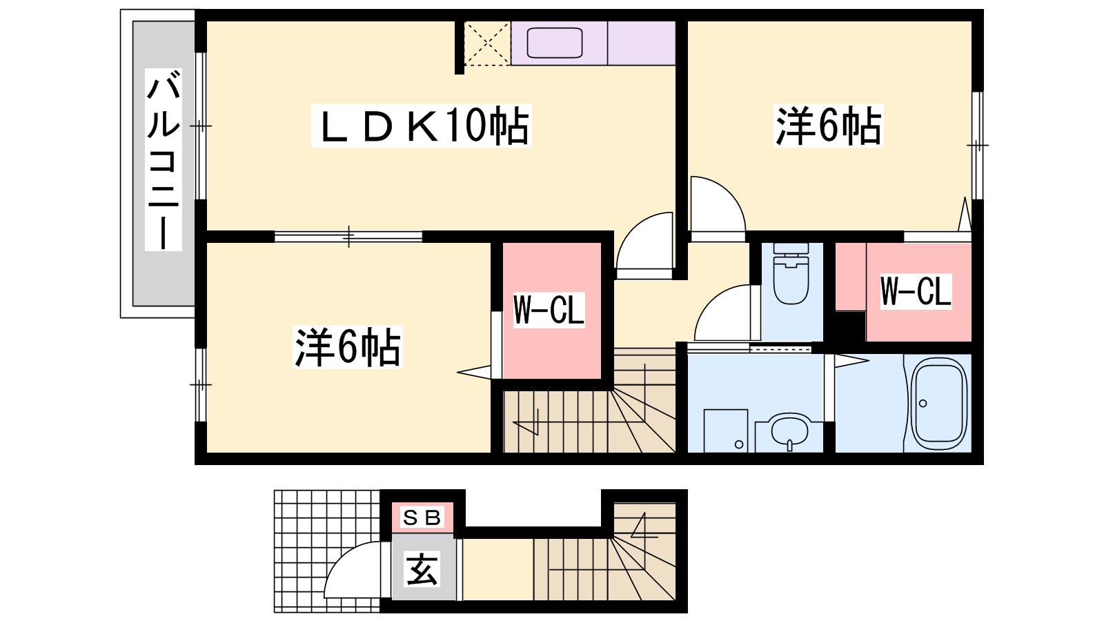 - LDK10帖、洋室6帖、洋室6帖