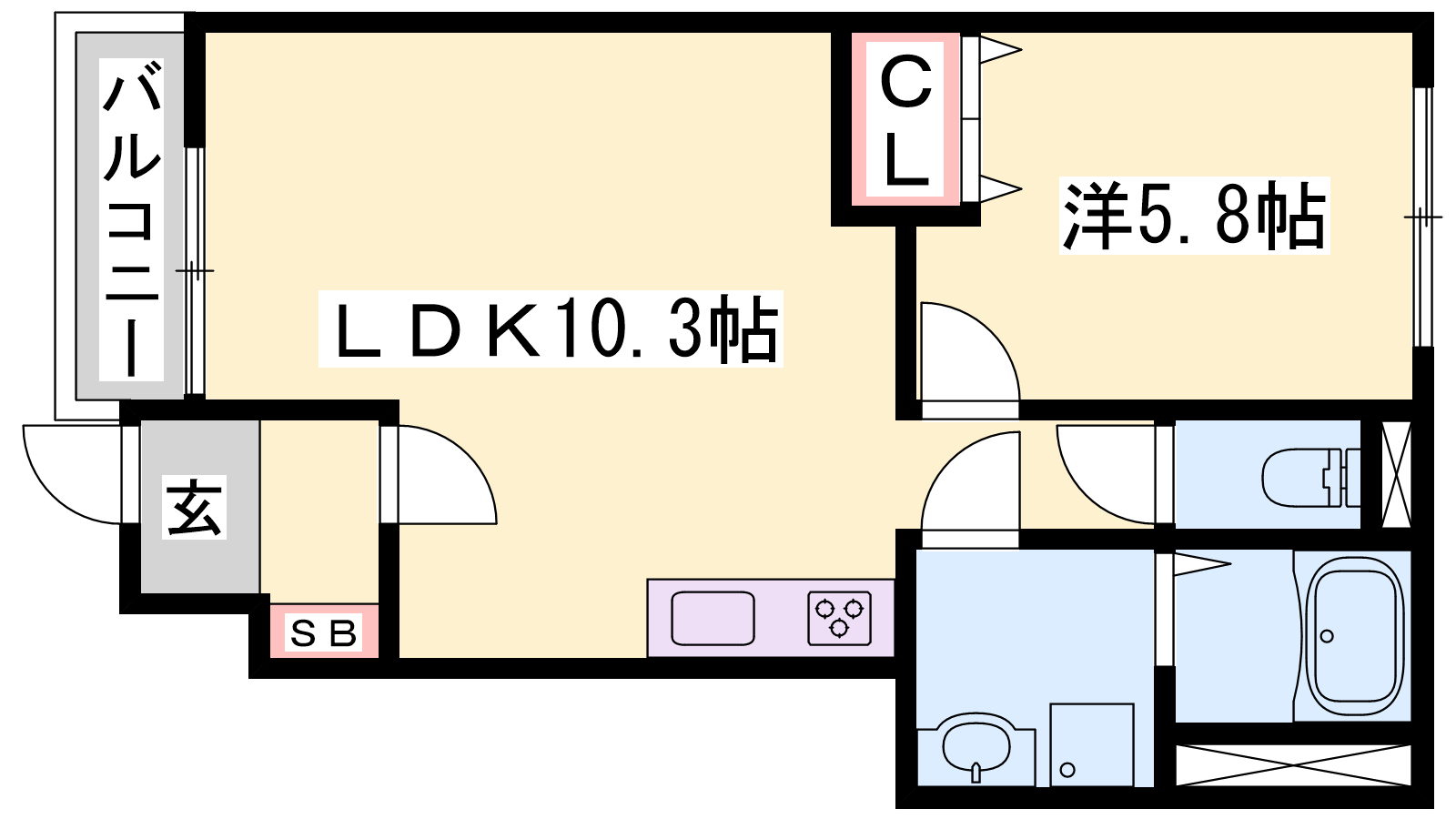 - LDK10.3帖、洋室5.8帖