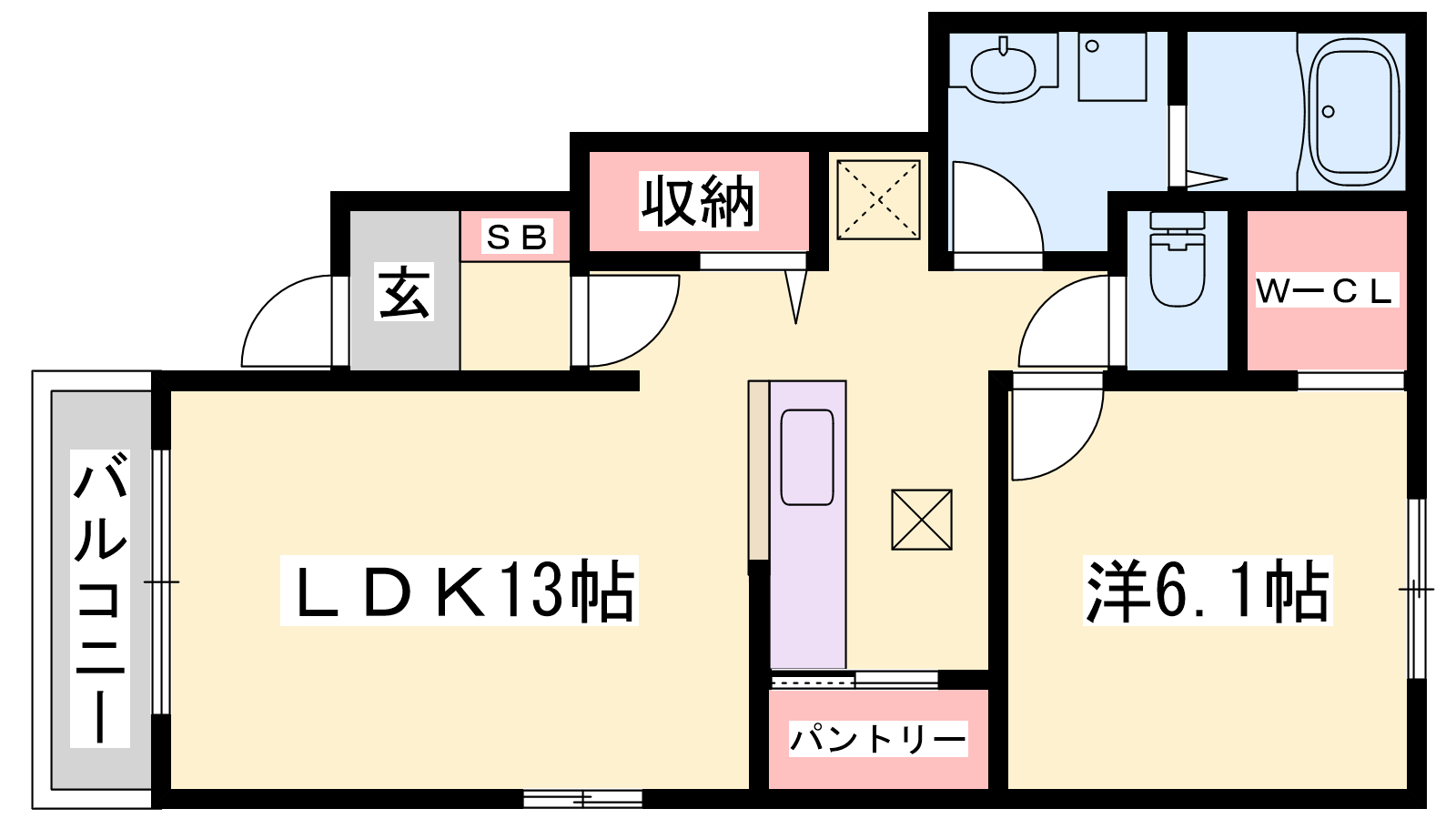- LDK13帖、洋室6.1帖