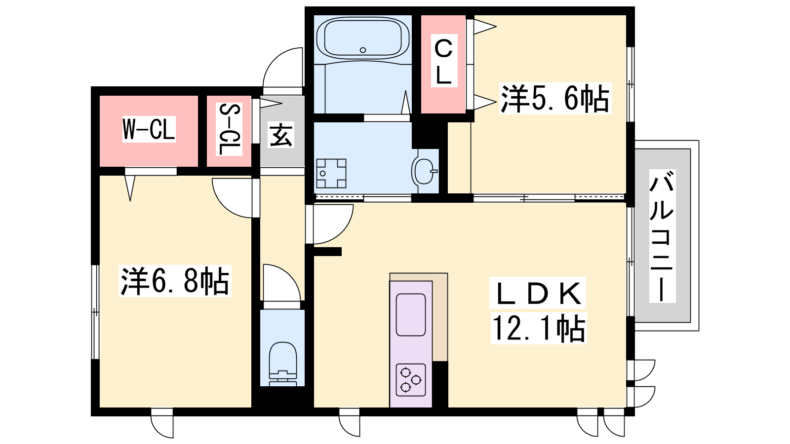 - LDK12.1帖、洋室6.8帖、洋室5.6帖