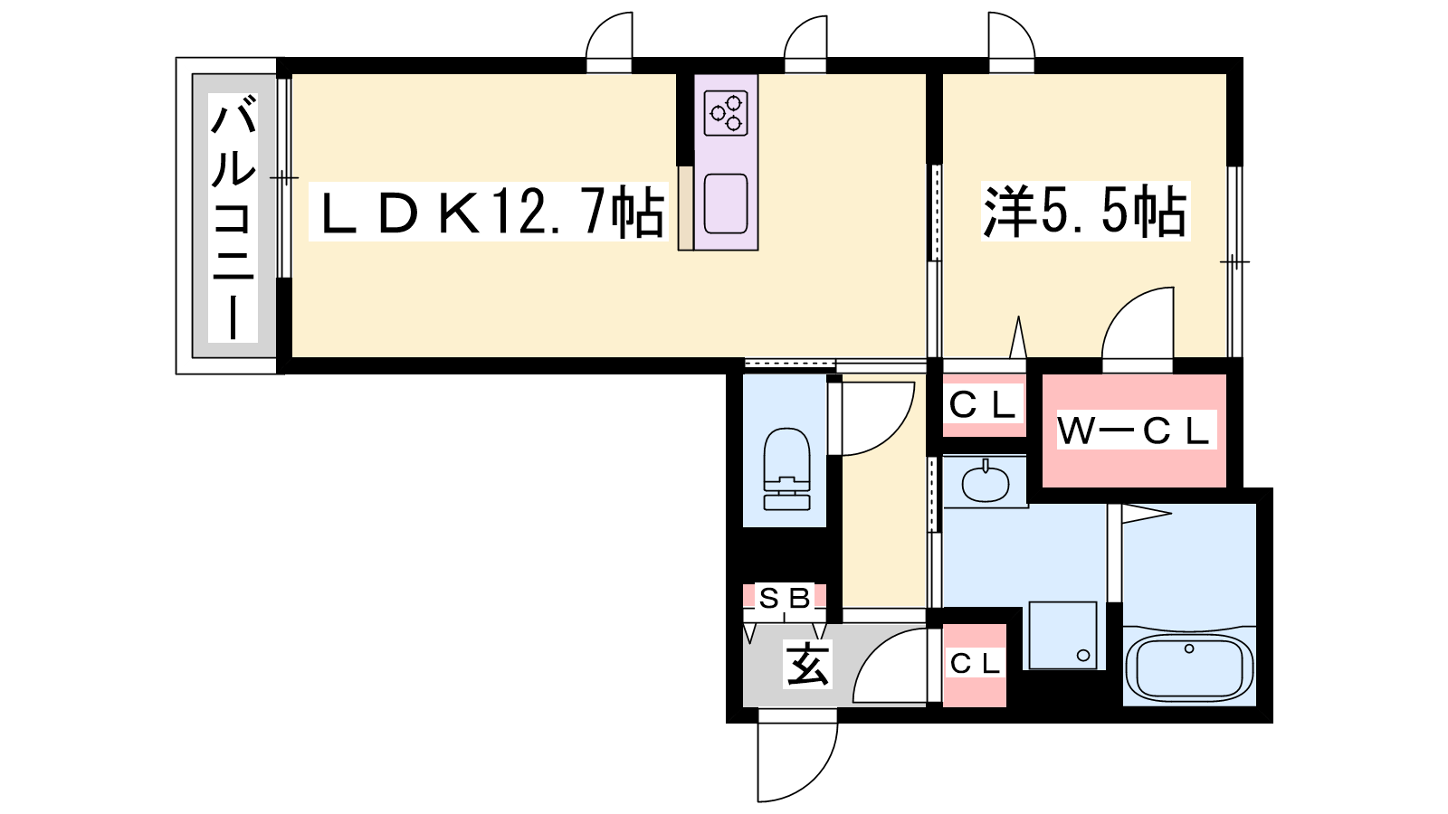 - LDK12.7帖、洋室5.5帖