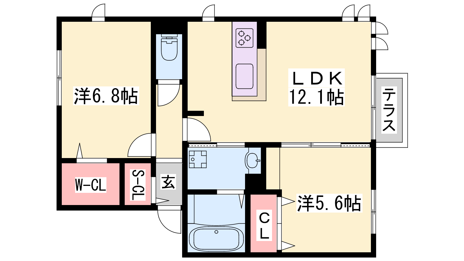 - LDK12.1帖、洋室6.8帖、洋室5.6帖