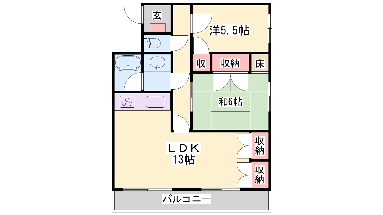- LDK13帖、洋室6帖、洋室5.5帖