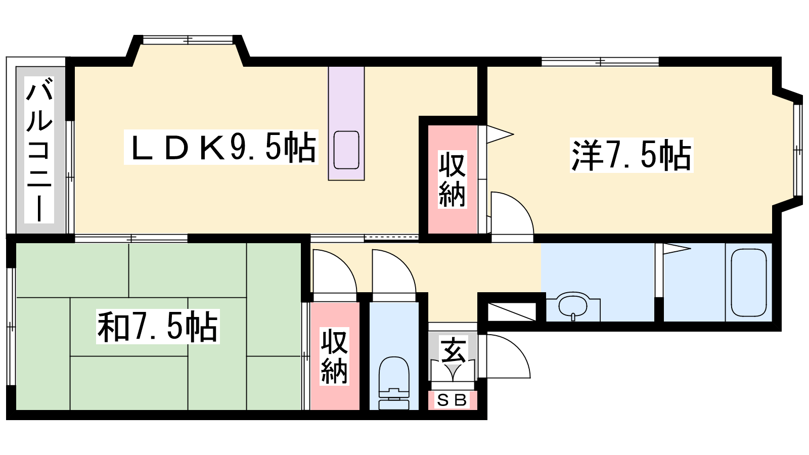 - LDK9.5帖、洋室7.5帖、和室7.5帖