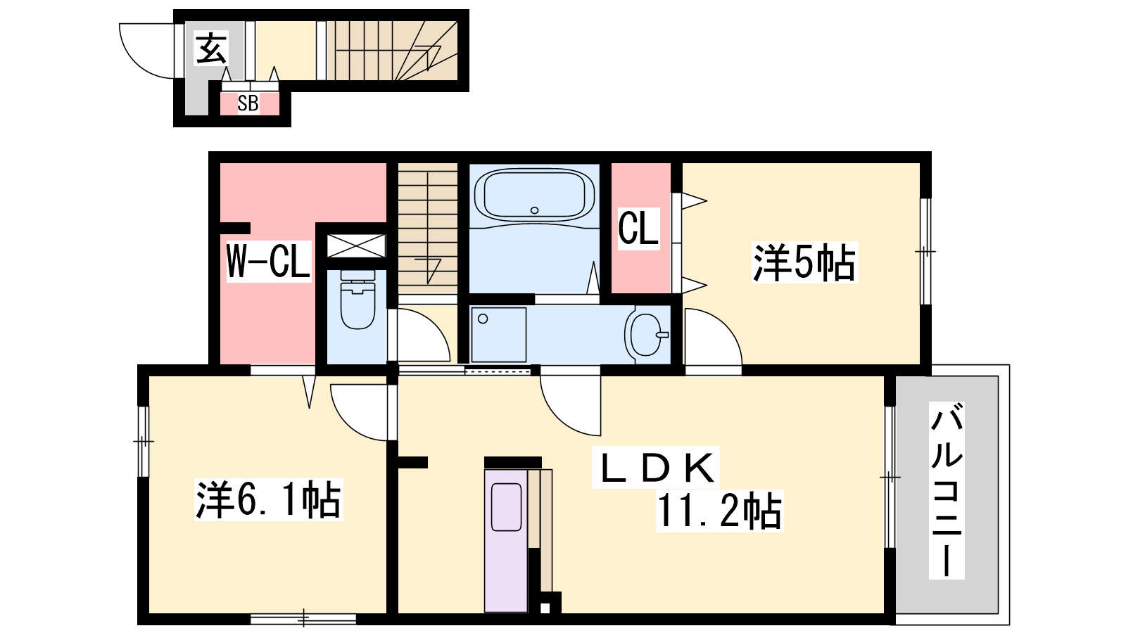 - LDK11.2帖、洋室6.1帖、洋室5帖