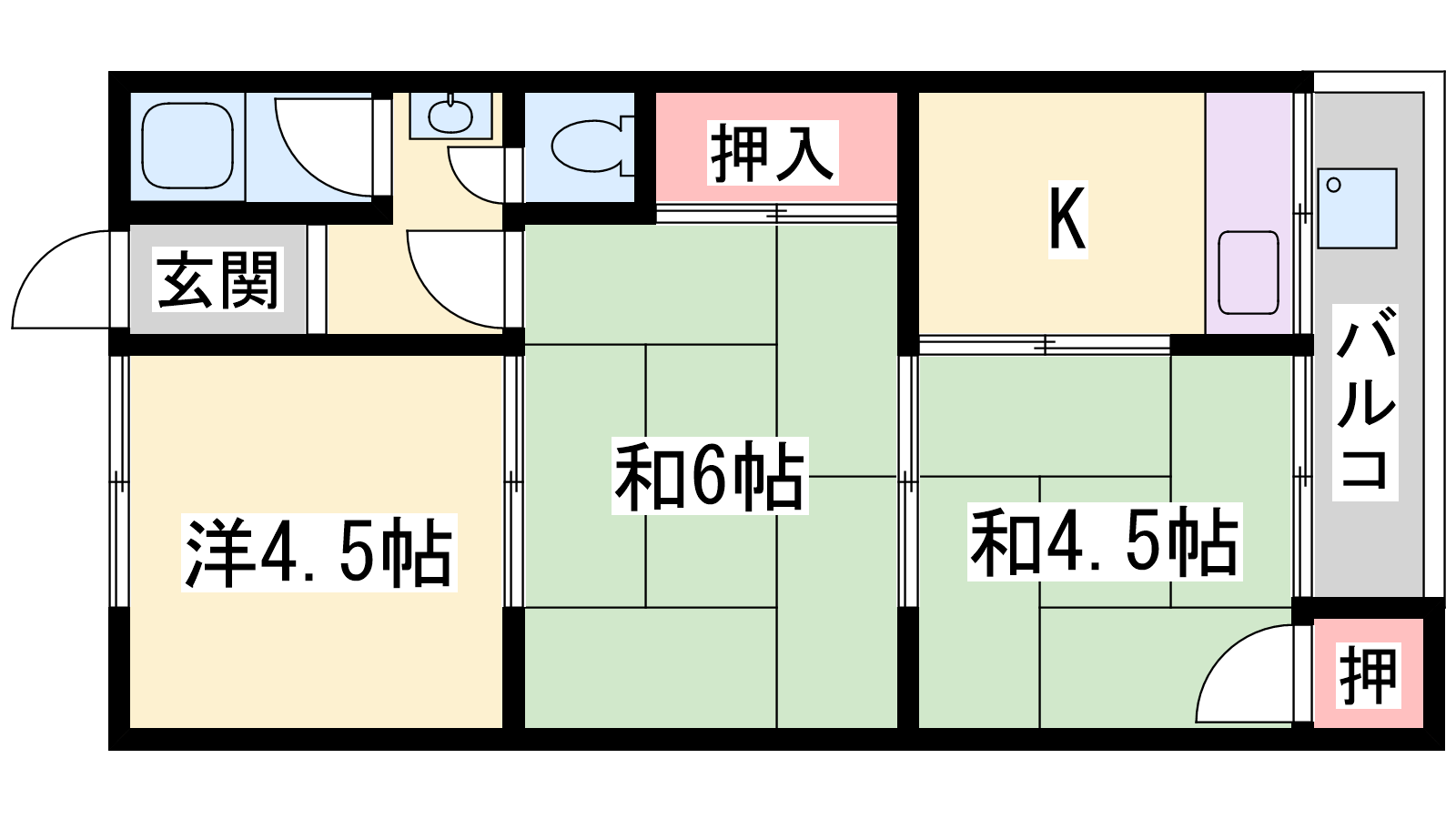 - DK3帖、洋室4.5帖、和室6帖、和室4.5帖