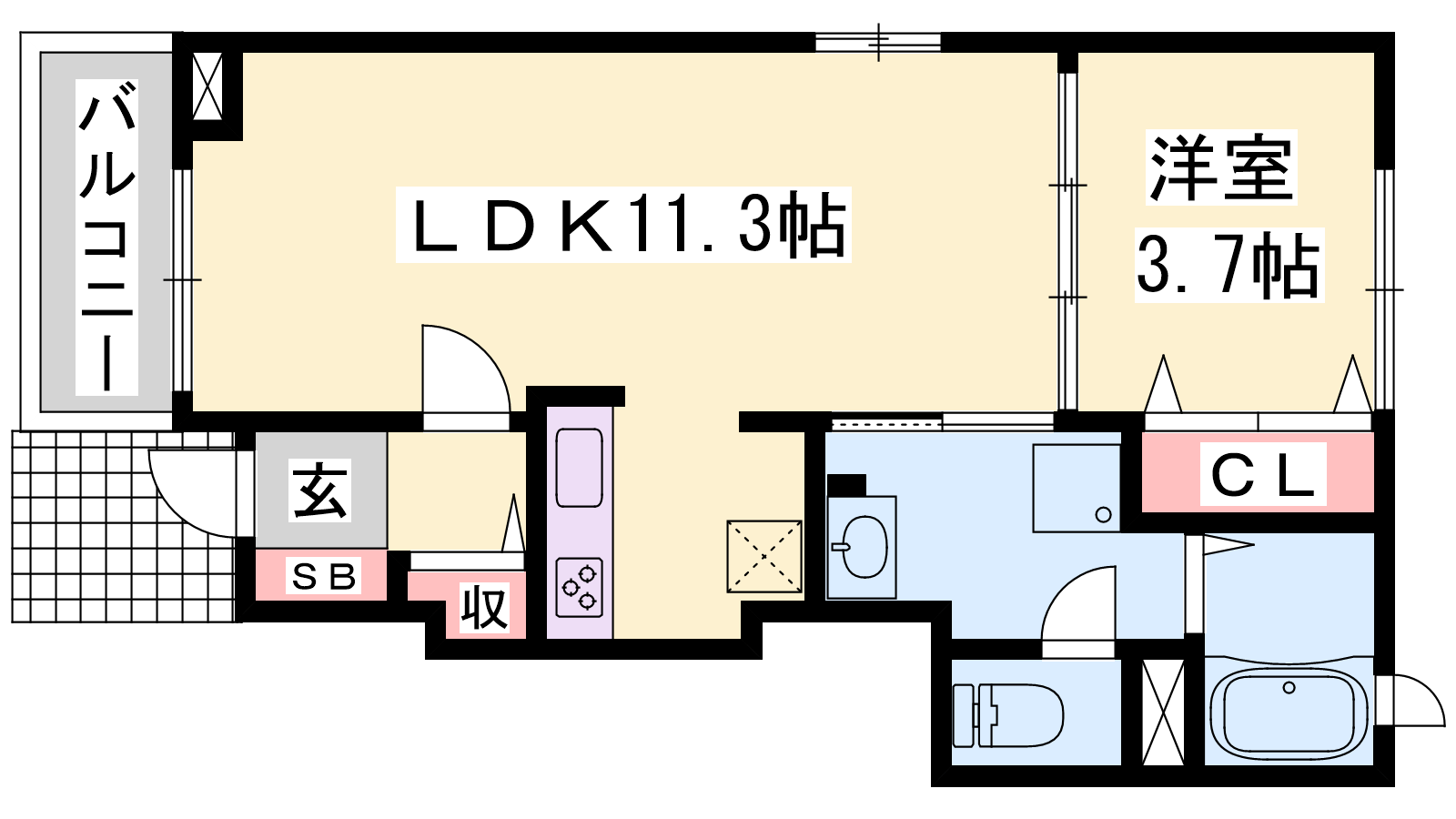 - LDK11.3帖、洋室3.7帖