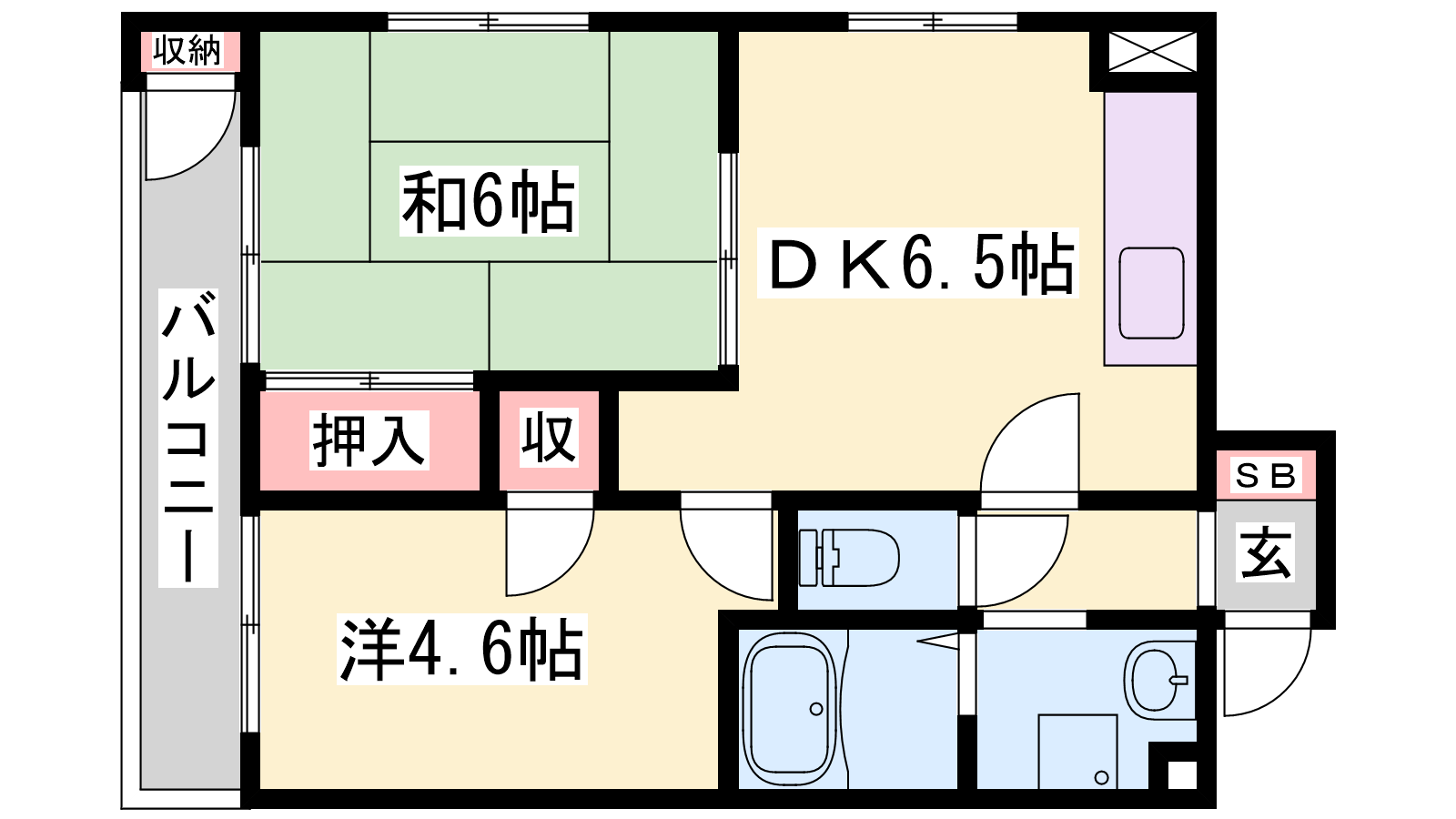- DK6.5帖、洋室4.6帖、和室6帖