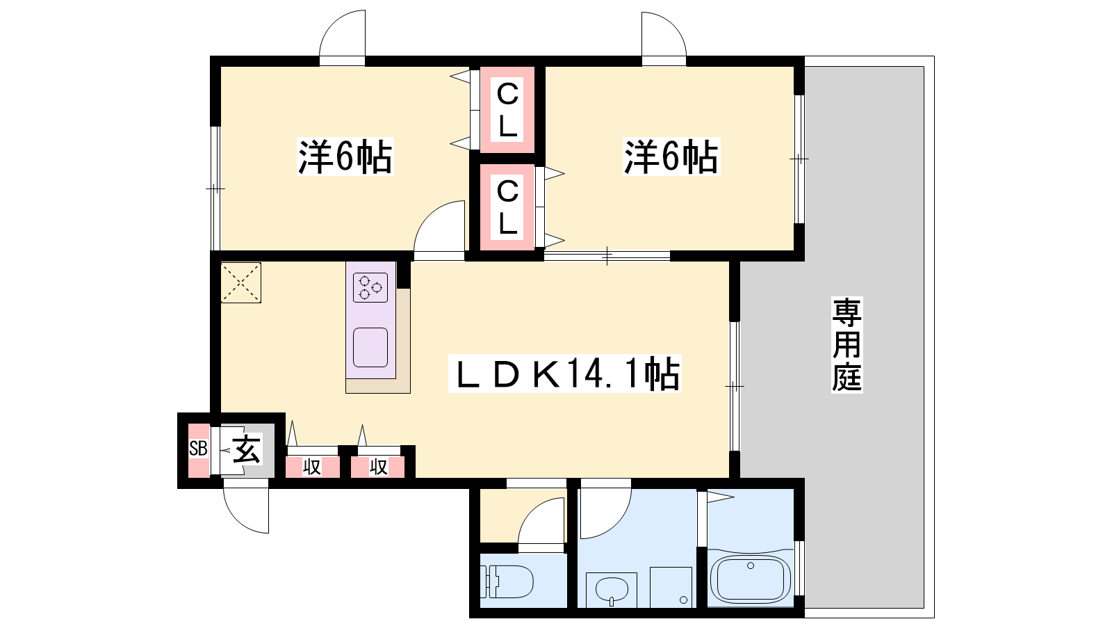 - LDK14.1帖、洋室6帖、洋室6帖