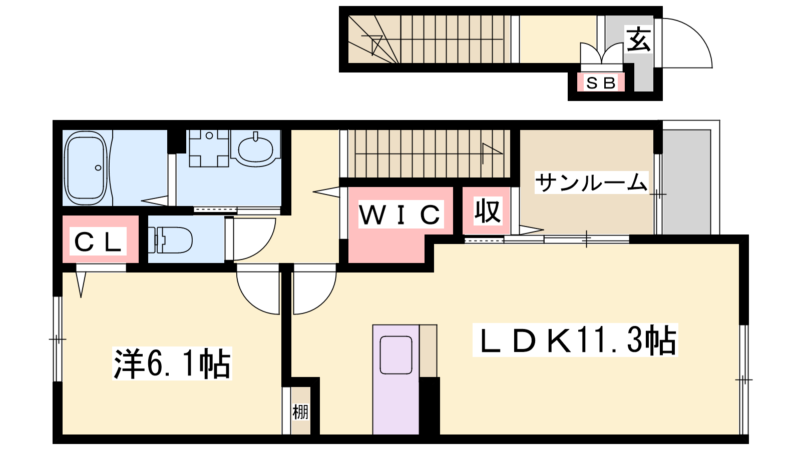 - LDK11.3帖、洋室6.1帖