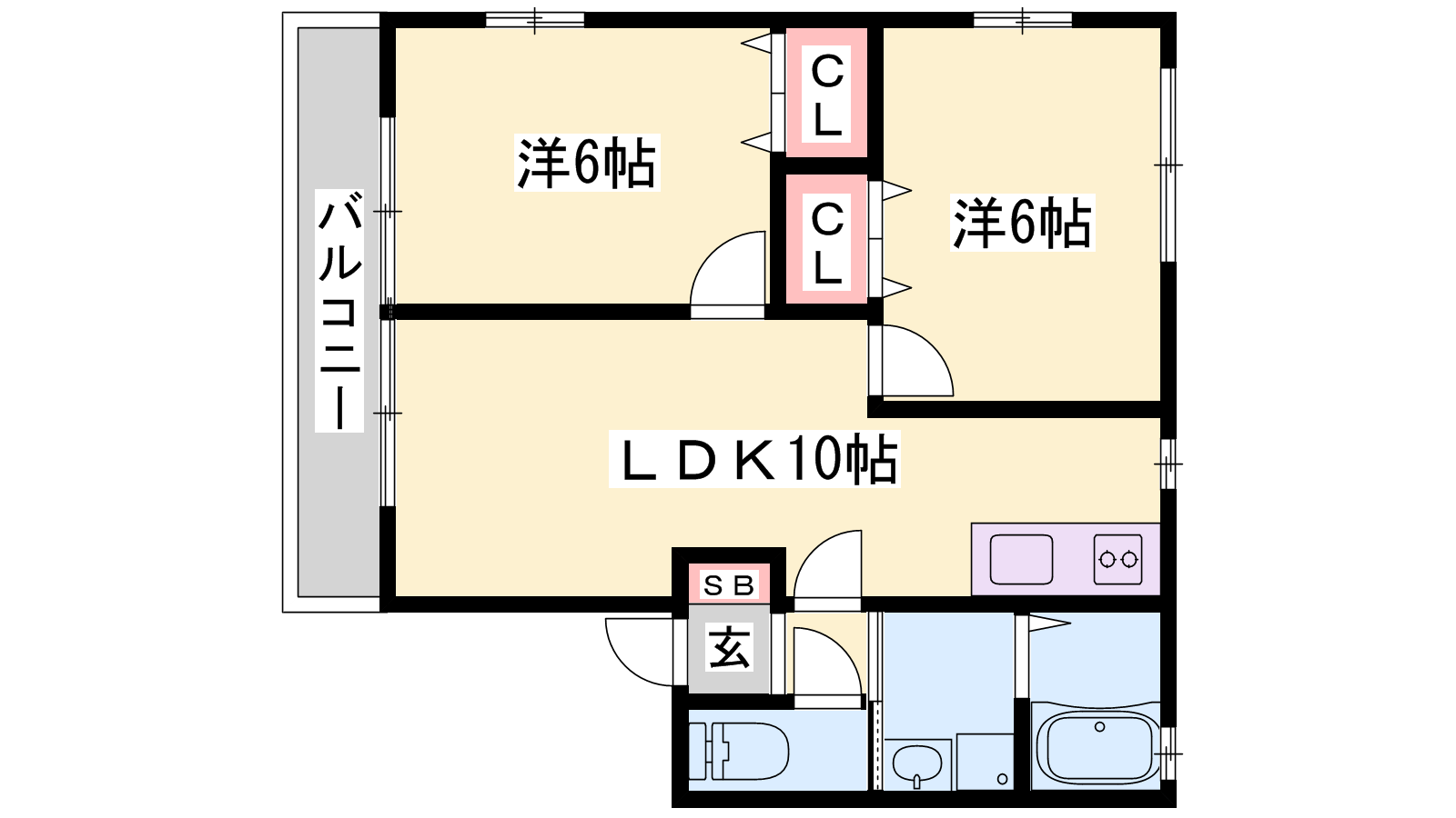 - LDK10帖、洋室6帖、洋室6帖
