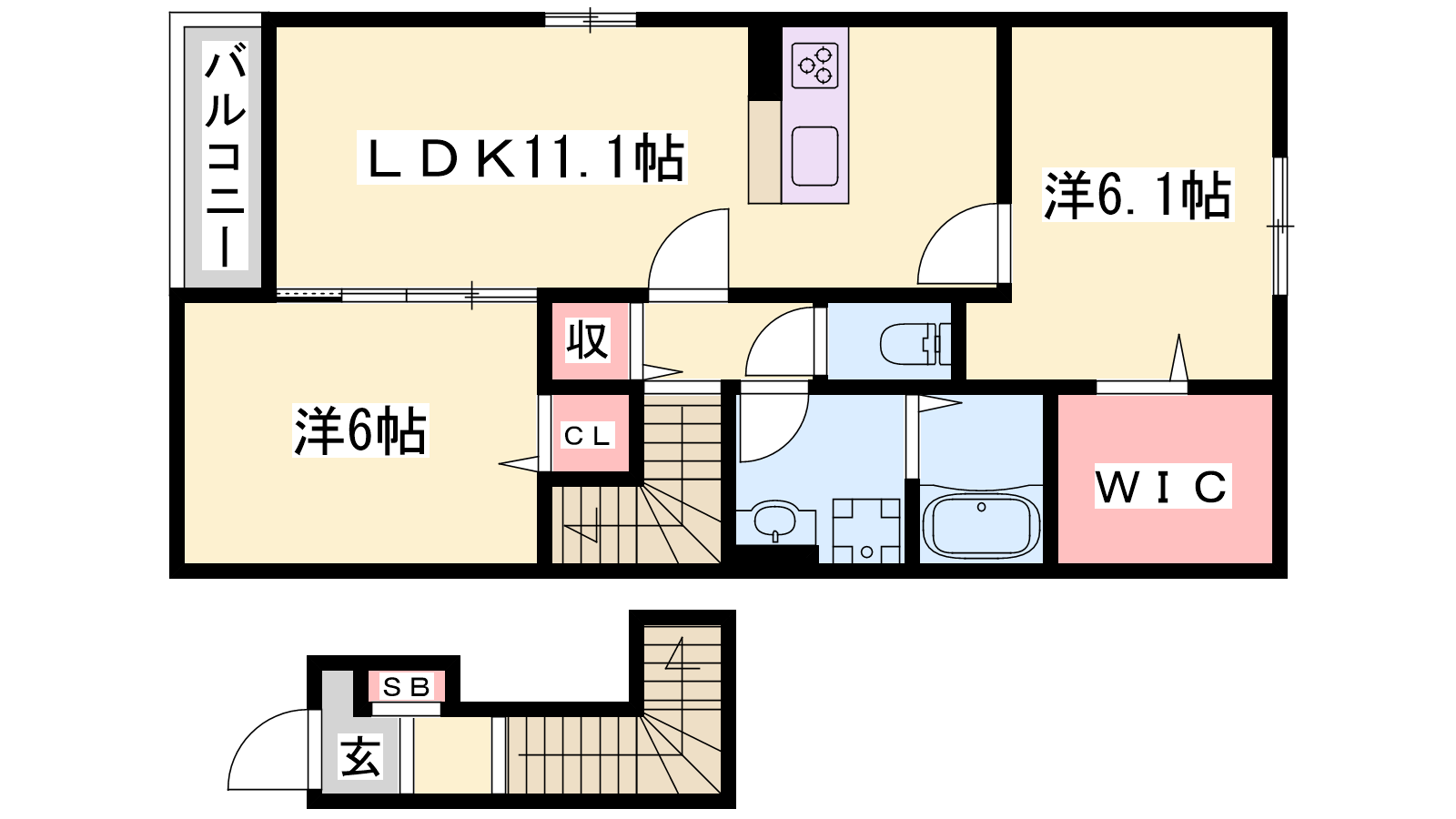 - LDK11.1帖、洋室6.1帖、洋室6帖