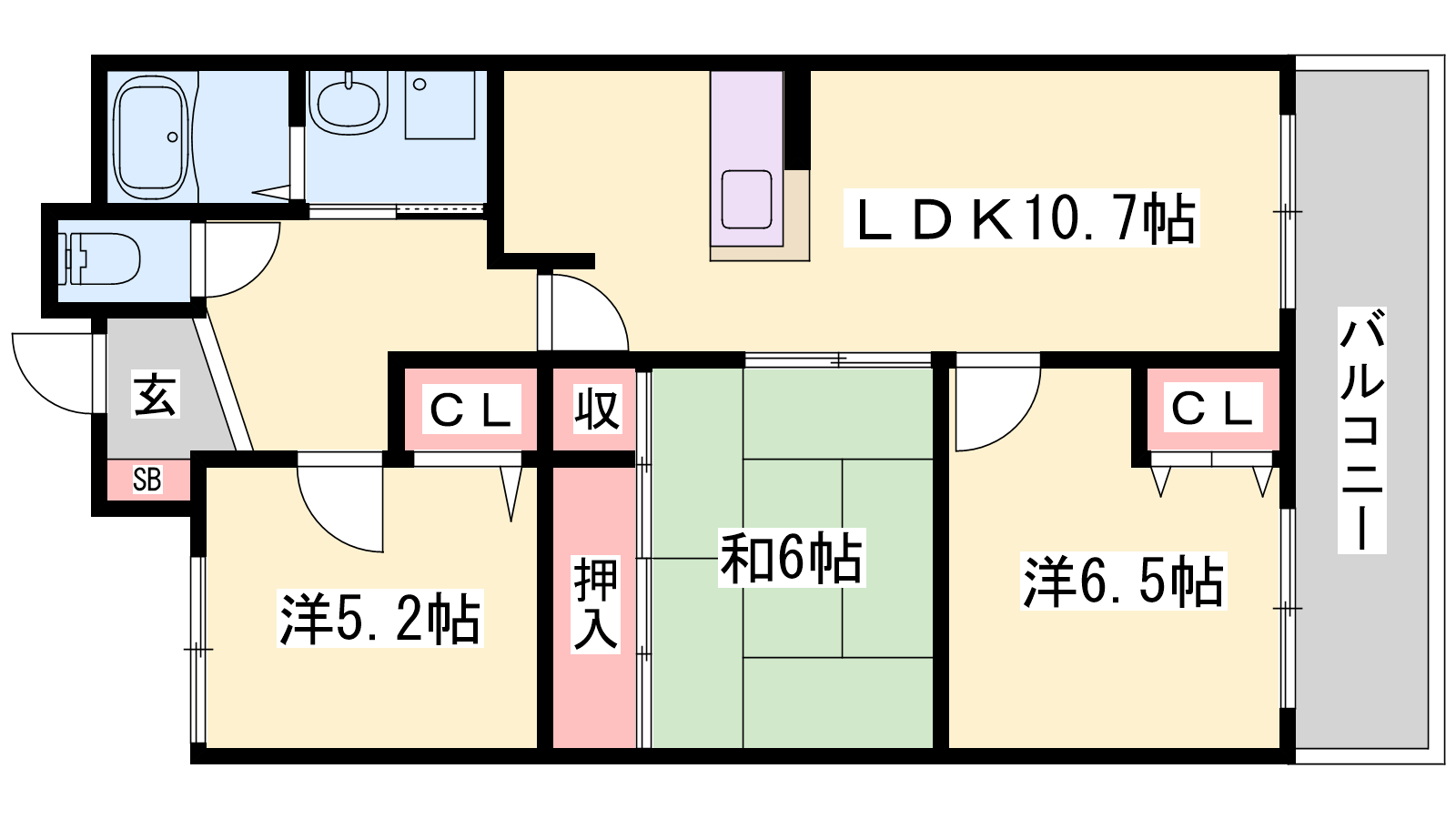 - LDK10.7帖、洋室6.5帖、和室6帖、洋室5.2帖