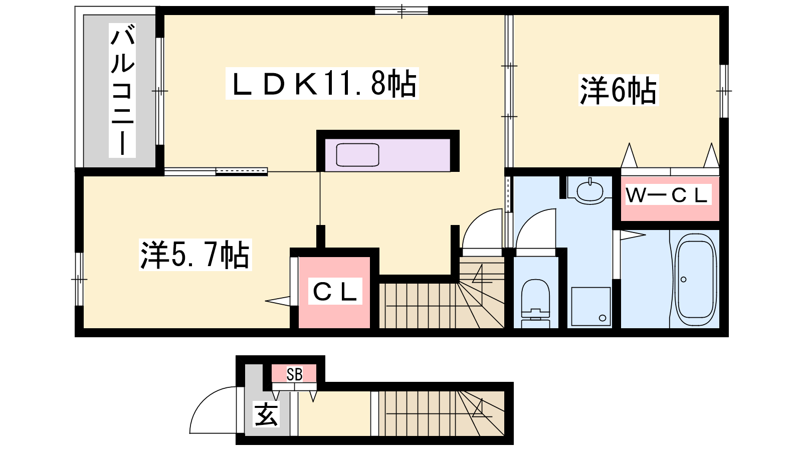 - LDK11.8帖、洋室6帖、洋室5.7帖