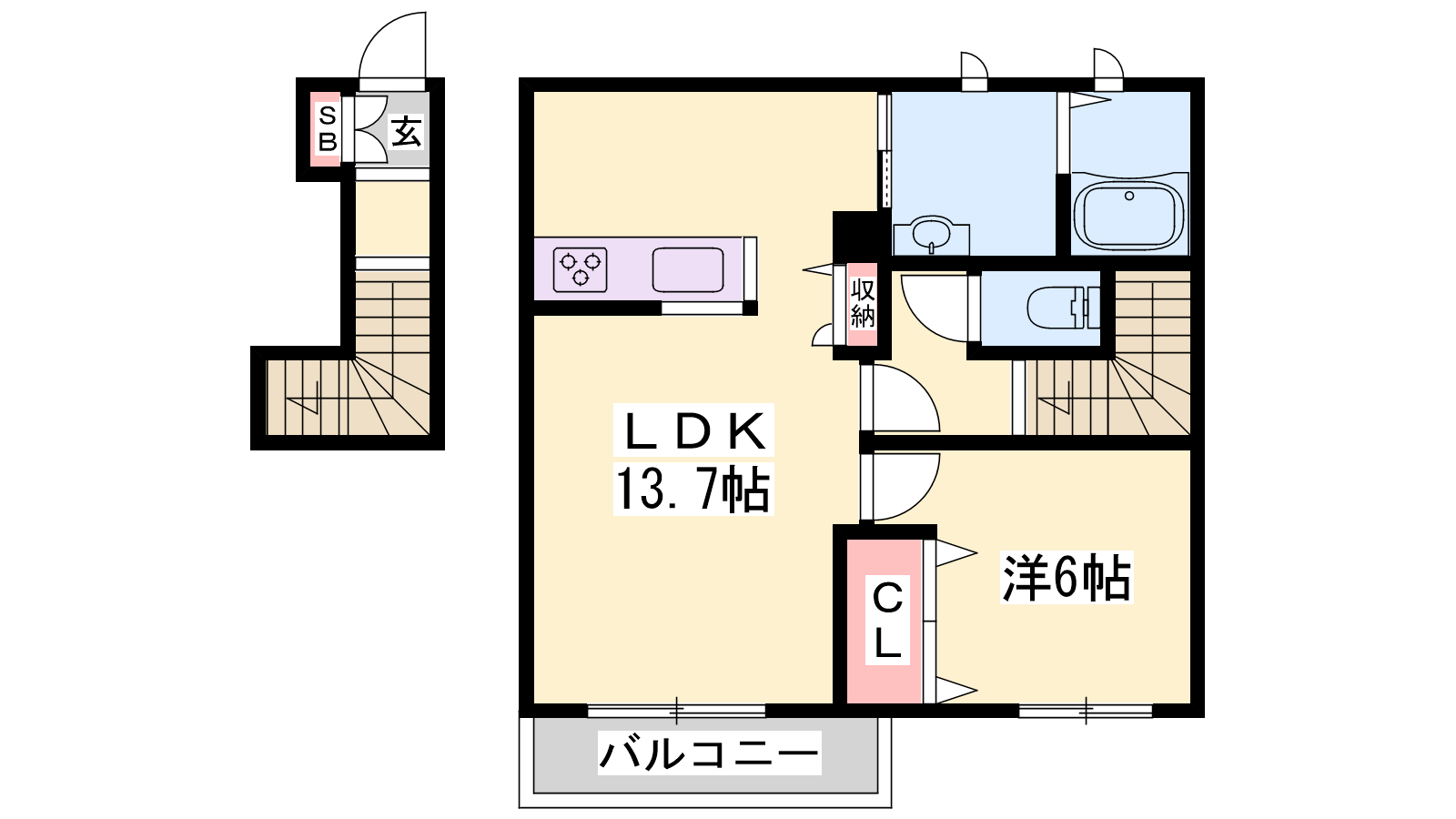 - LDK13.7帖、洋室6帖