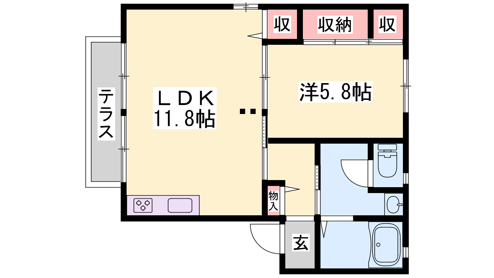 - LDK11.8帖、洋室5.8帖