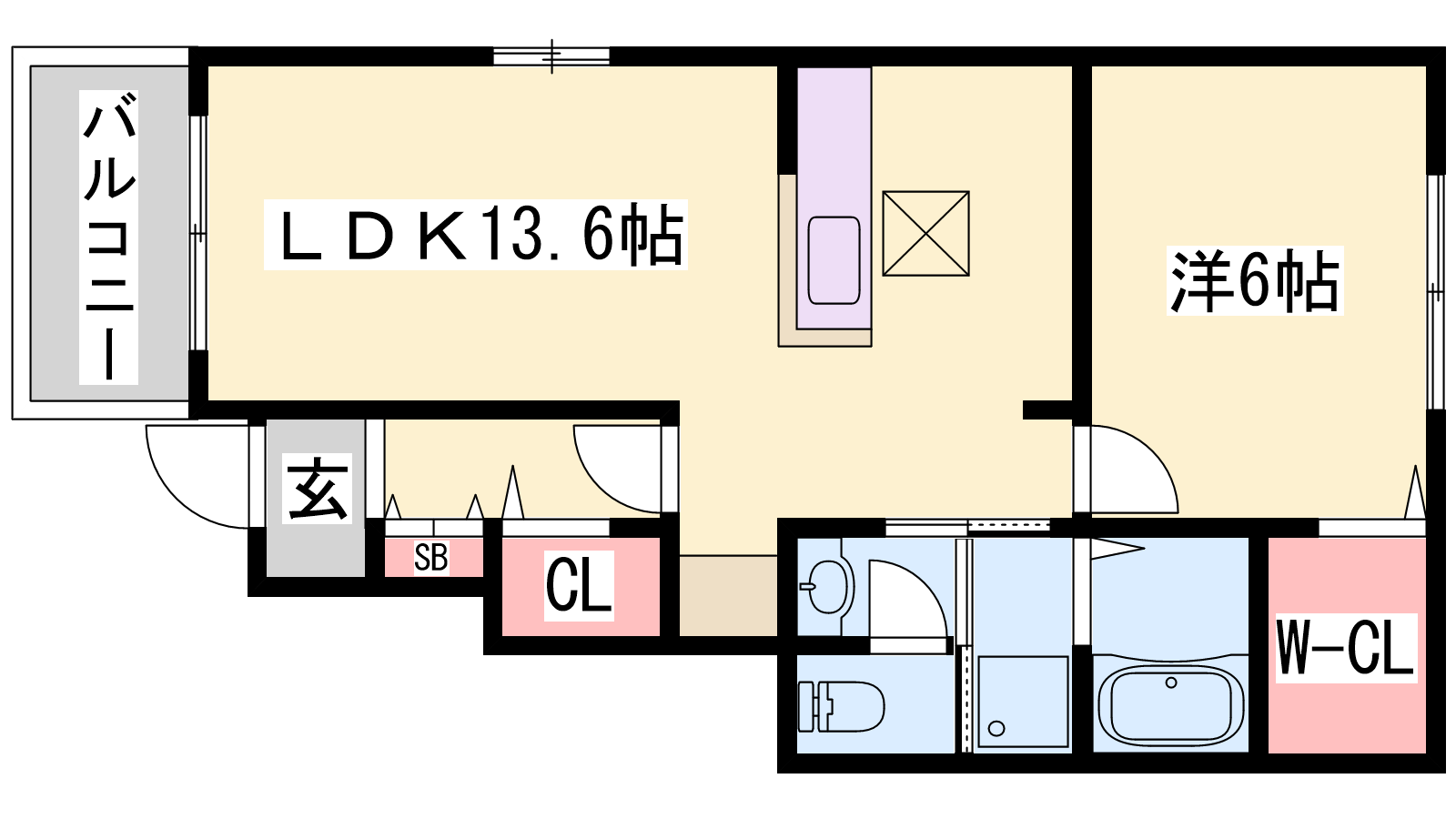 - LDK13.6帖、洋室6帖